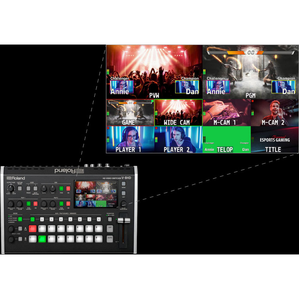 どんな場所にでも持ち運びやすい軽量設計。本体質量は2kg、コンパクトな本体は設置場所を選びません。堅牢なTバーと操作しやすいパネル・レイアウト、8つのHDMI入力、18チャンネルのオーディオ・ミキサーを搭載し、外部電源の対応により、ACアダプターが使えない場所でも使用できます。