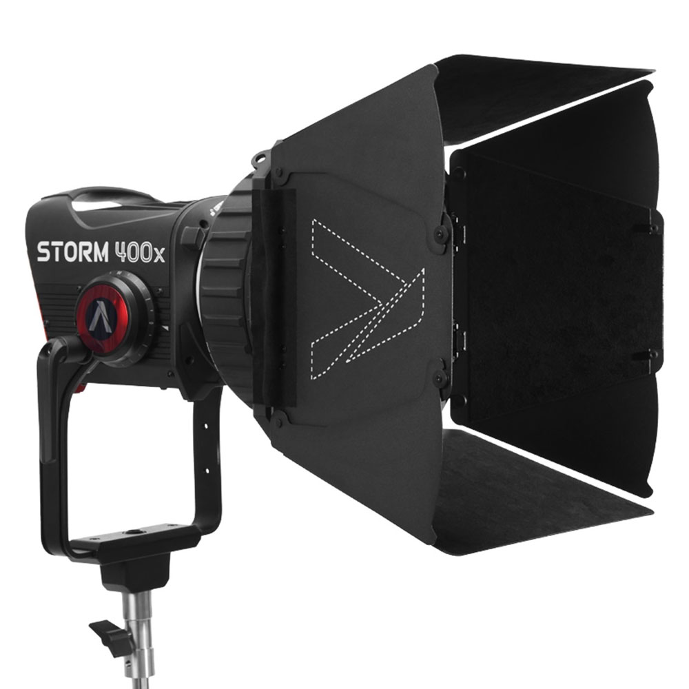 ◆Aputure「STORM 400x」に専用のフレネル,バーンドアを付属したセットです。