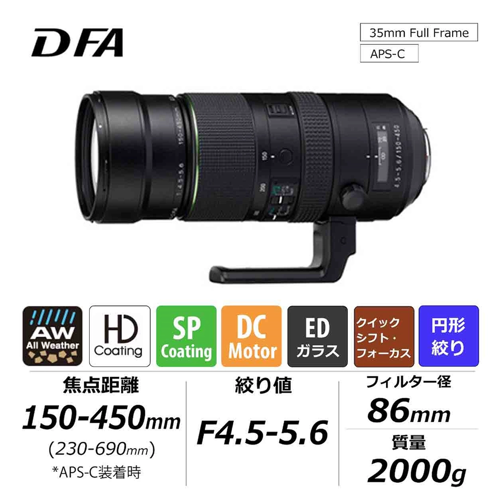 - 35ミリ判換算値 230-690mm相当 (ペンタックス APS-Cサイズ一眼レフカメラ装着時)