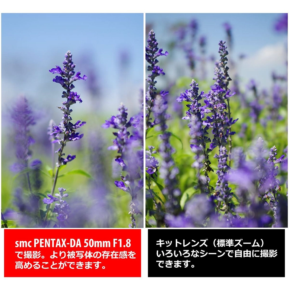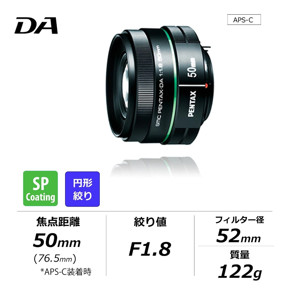 ペンタックスAPS-Cサイズ一眼レフカメラに装着することで、35ミリ判換算で76.5mm相当の画角が得られます。背景のボケを生かしたポートレートや被写体の一部を切り取るスナップなど、中望遠レンズならではの撮影が楽しめます。また、レンズ前面に、撥水性や撥油性があるSP(Super Protect)コーティングを採用することで、汚れがつきにくくなるとともに油汚れも簡単に落とすことができ軽快に持ち歩くことができます。