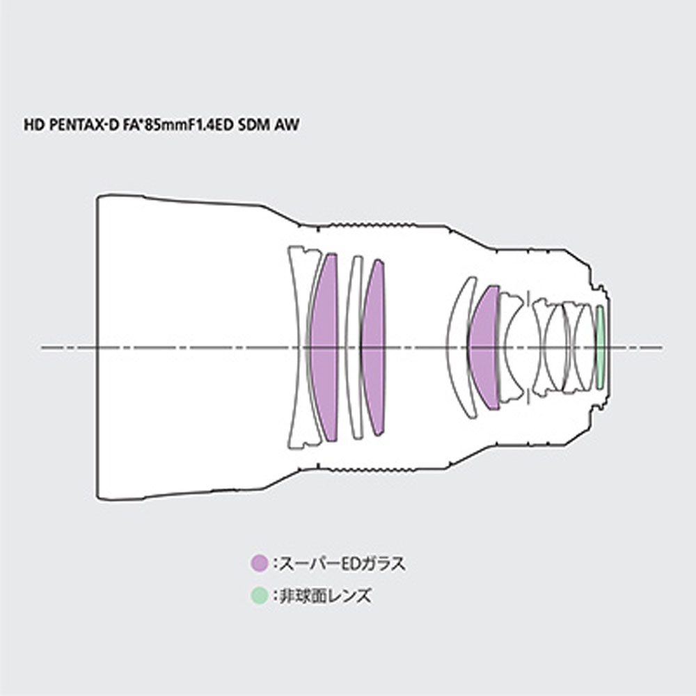 高性能なスーパーEDガラスや非球面レンズを惜しみなく採用して極限まで諸収差を低減、特にポートレート撮影で重要とされる歪曲収差に関しては約4mでほぼ0%(Zero Distortion)を実現したほか、パープルフリンジの発生も効果的に抑制。