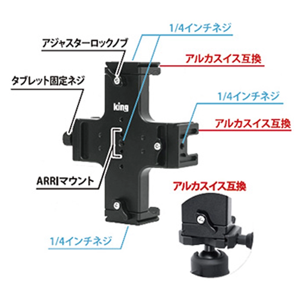 W107~265mm/H130~315mmサイズのタブレットに対応するタブレットホルダーです。 上下左右方向からホールドすることによりタブレットなどをしっかり固定、不意の落下リスクを軽減することができます。三脚と組み合わせて撮影や動画鑑賞など様々な用途に使用いただけます。