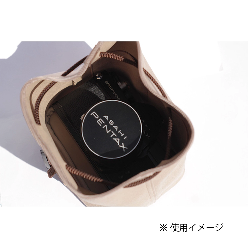 カメラを傷つけない優しいデザインとは、開口部に金具やファスナーを使わないこと。程よい厚みとしなやかさをもつ巾着タイプのポシェットが、あなたの大切な愛機を守ります。手紐を緩めて開口部を広げオープンにすると、お気に入りのバッグの中にカメラスペースを作ることができます。このプロダクトは、”包む感覚で守る”をコンセプトにした蔵CURAの新しいカメラポシェットです。
