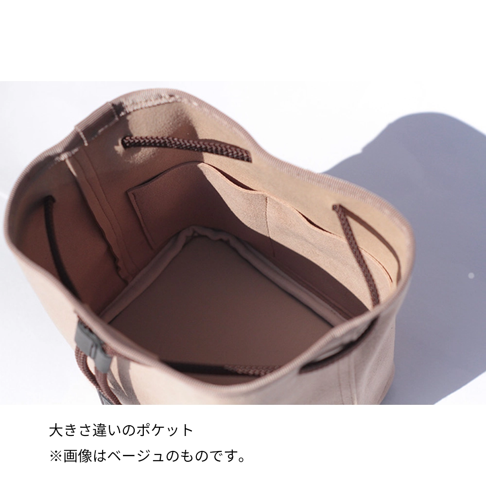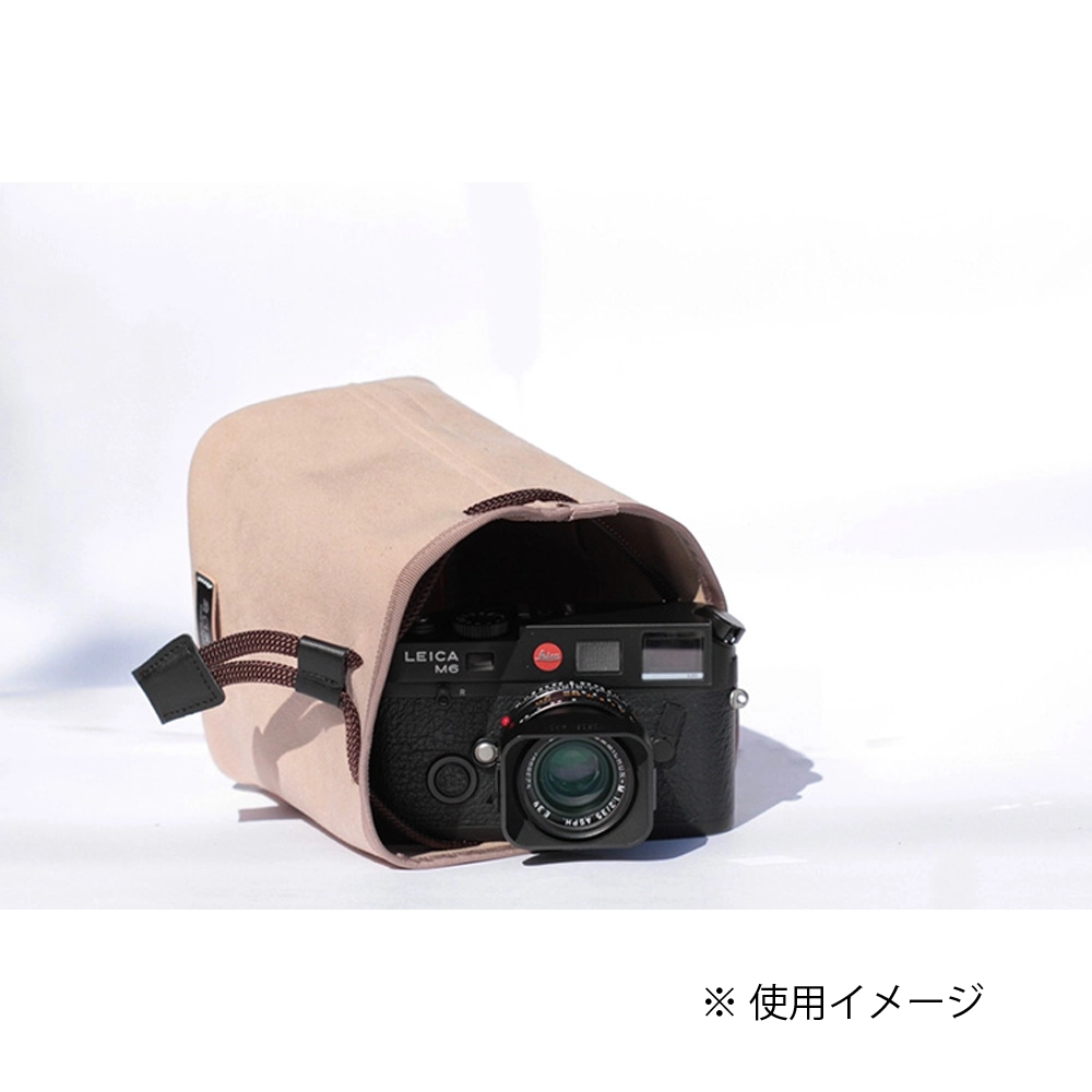 カメラを傷つけない優しいデザインとは、開口部に金具やファスナーを使わないこと。程よい厚みとしなやかさをもつ巾着タイプのポシェットが、あなたの大切な愛機を守ります。手紐を緩めて開口部を広げオープンにすると、お気に入りのバッグの中にカメラスペースを作ることができます。このプロダクトは、”包む感覚で守る”をコンセプトにした蔵CURAの新しいカメラポシェットです。