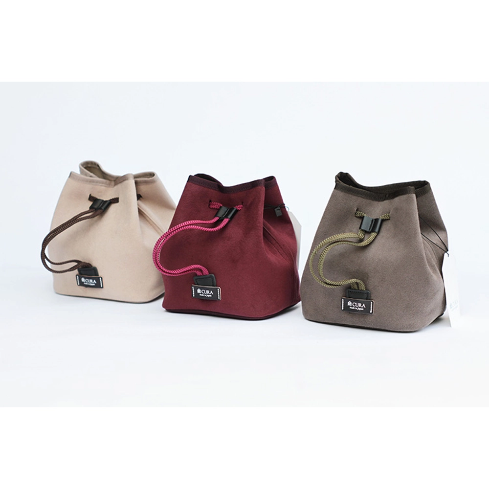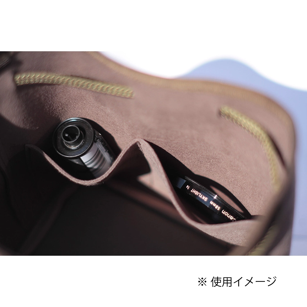 カメラを傷つけない優しいデザインとは、開口部に金具やファスナーを使わないこと。程よい厚みとしなやかさをもつ巾着タイプのポシェットが、あなたの大切な愛機を守ります。手紐を緩めて開口部を広げオープンにすると、お気に入りのバッグの中にカメラスペースを作ることができます。このプロダクトは、”包む感覚で守る”をコンセプトにした蔵CURAの新しいカメラポシェットです。