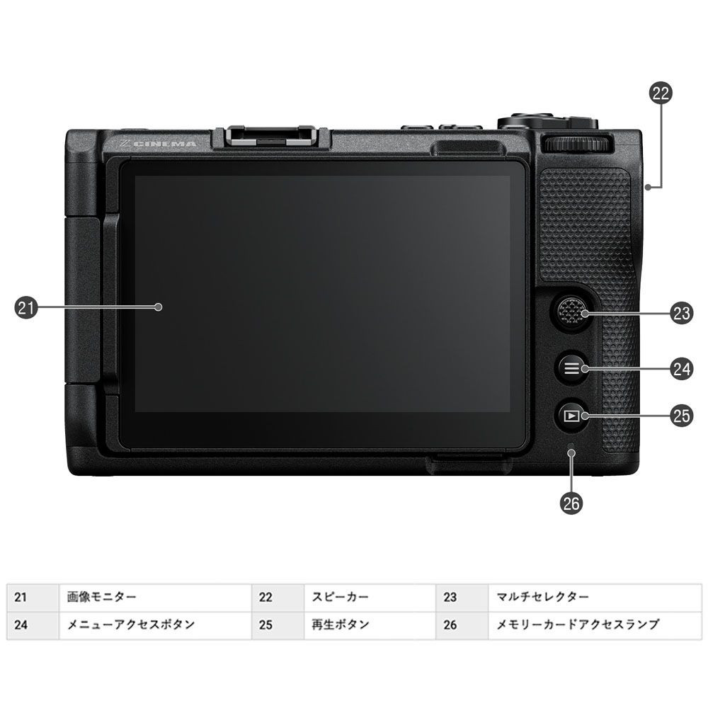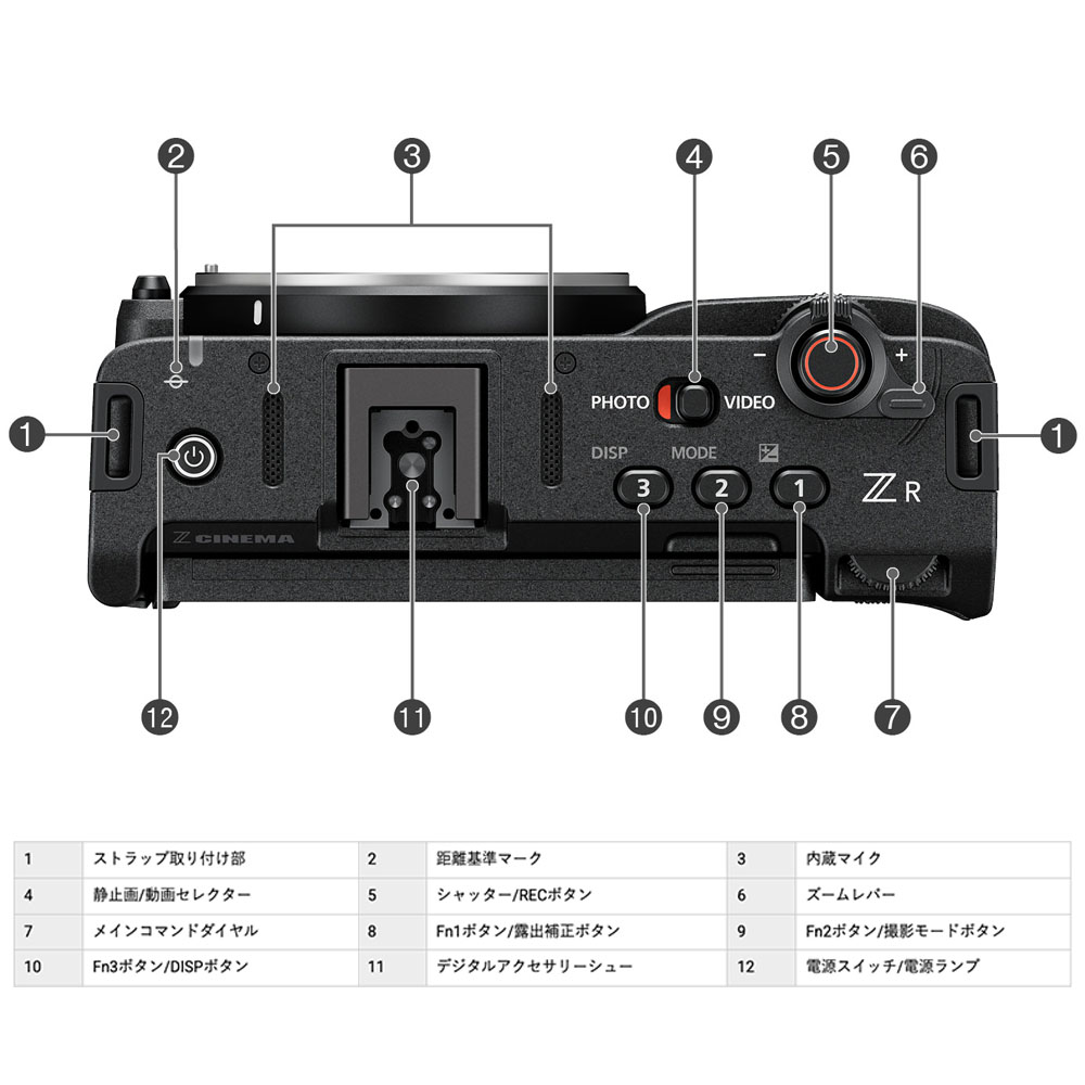 このコンパクトなボディーは人間工学に基づいてデザインされています。グリップは握りやすい曲面形状。軽量なボディーと相まって手持ち撮影時の負担を軽減します。静音性に優れたダイヤルはカメラの前方と後方に搭載されており、あらゆる場面で素早く設定の変更が可能。レバーとボタンは手持ち撮影に最適化されています。また、ボディーがコンパクトなため、リグなどの機材と組み合わせやすく、最小限の装備で機動力を確保したいワンオペのクリエイターや、効率が求められる商業撮影の現場など、さまざまな撮影スタイルに合わせてシステムを柔軟にカスタマイズできます。ZRは単にコンパクトなだけではなく非常に高性能です。
