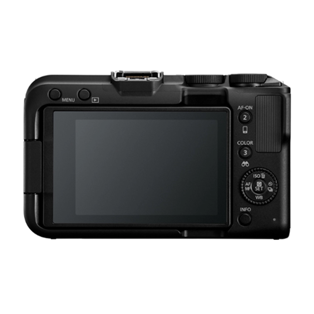 従来のEOSシリーズとは異なる、動画撮影に適した、ファインダーレスのフラットで直線的なデザインや操作性を再構築。長時間撮影でも疲れにくい約370g(バッテリー、カードを含む)の軽量ボディに大型の撮影ボタンや動画撮影を主体としたモードダイヤルを設計し、スムーズに操作できるようにしました。