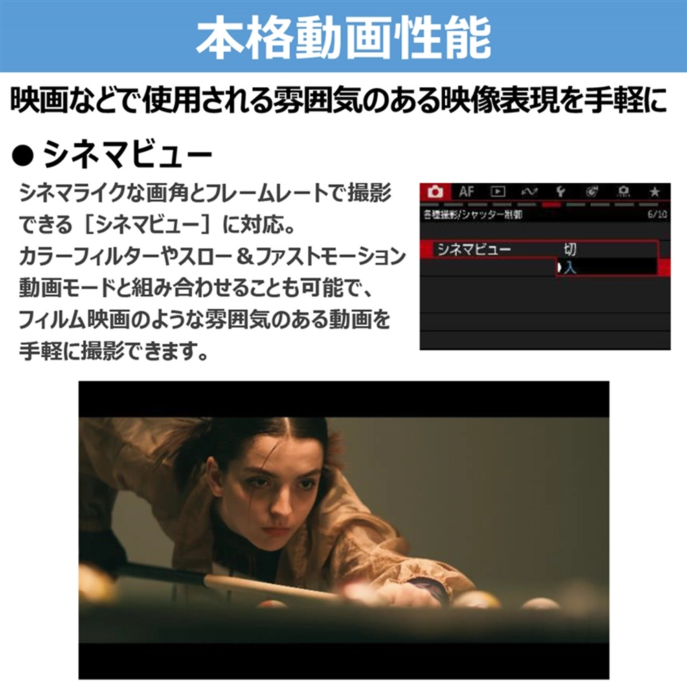 デュアルピクセルCMOS AF II を搭載し、被写体に粘り強く追従する高度な動画AFを実現。クリエイターは構図と撮影タイミングに集中して作品に没頭することができます。