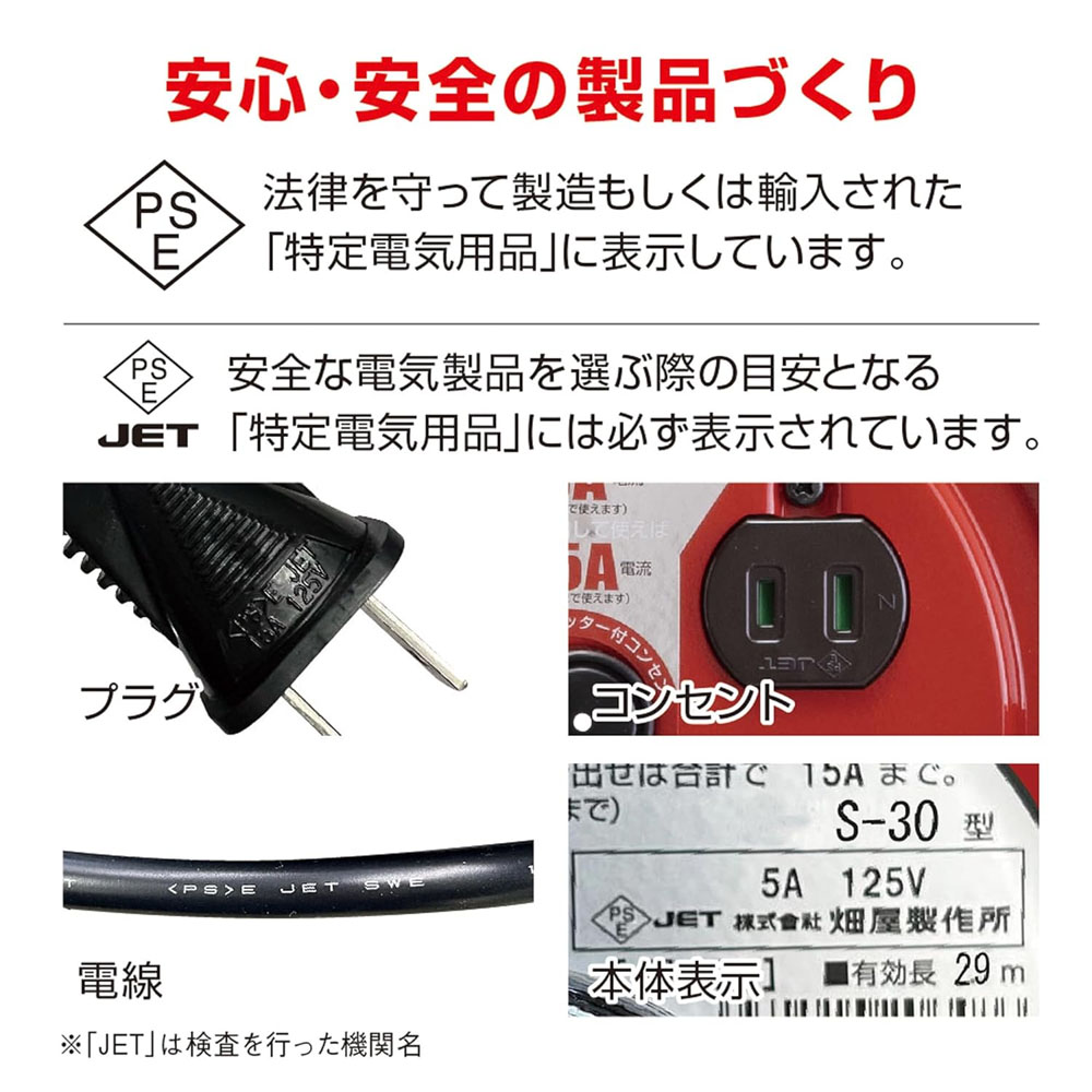 信頼性の高いフェノール樹脂製コンセントで高負荷にも安心。コンセント内部へのホコリの侵入を防ぎます。