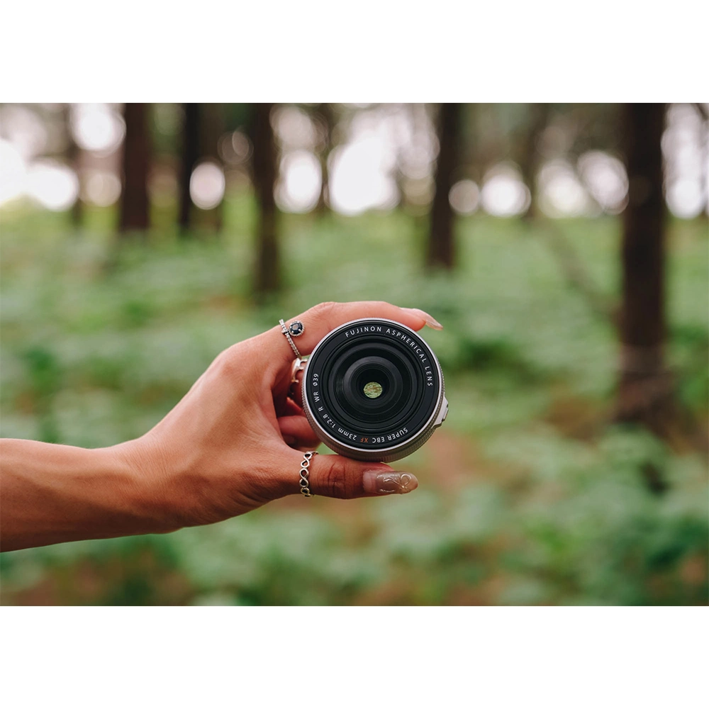 「XF23mmF2.8 R WR」は、超小型軽量設計と高い解像性能を両立させた焦点距離23mm(35mm判換算:35mm相当)レンズです。約4020万画素の「X-Trans™ CMOS 5 HR」*1センサーに対応する高い解像性能を実現しながらも、最新のレンズ加工技術によるレンズの薄型化と、外装部品や構造部品のスリム化により、全長わずか23mm*2、質量約90gの超小型化を実現しました。標準・広角・近接などさまざまな撮影に一本で対応する汎用性のほか、高い操作性とタフネス性能を実現。スナップ撮影や人物・風景撮影のほか、テーブルの上に置かれた料理や花などを撮影するテーブルフォトなどさまざまなシーンでの撮影に最適です。「XF23mmF2.8 R WR」は、高い携帯性と撮影性能により、あらゆる撮影シーンでその威力を発揮する相棒として常に持ち運びたくなるような一本です。