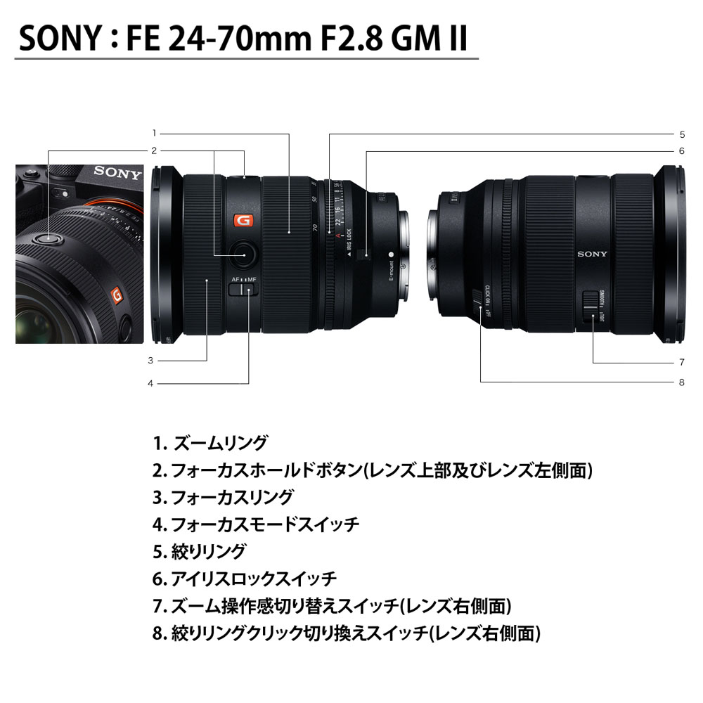 静止画・動画を問わずG Masterならではの高い描写性能を世界最小・最軽量(*1)で実現。標準ズームレンズに要求される携行性・機動性を大幅に高めました。さらにズーム中のフォーカス追随性能は高推力なXDリニアモーター4基とフローティングフォーカス機構を採用することで従来比約2倍(*3)に向上。最新のレンズ設計技術でフォーカスブリージングなども徹底的に抑制。静止画・動画の両方で、表現者のこだわりに応えます。