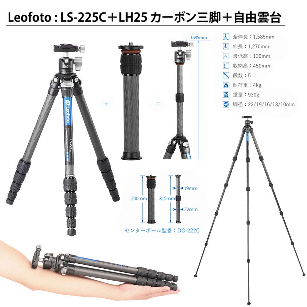 【Leofoto : LS-225C+LH25 カーボン三脚+自由雲台】