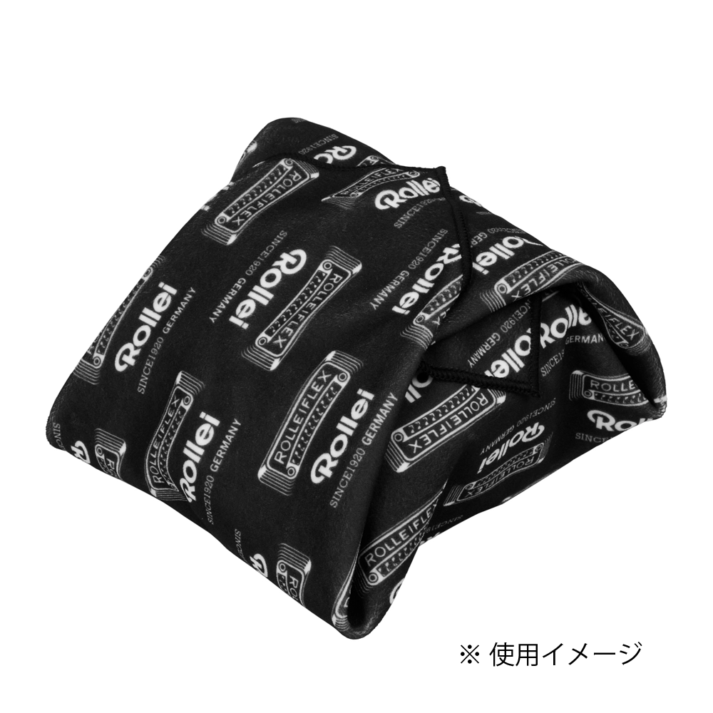お馴染み[ROLLEIFLEX]ボディをデザインしたカメラクロスです。生地の表面と裏面にそれぞれ特殊な素材を使っており、接触するとしっかりくっつきます。カメラ以外にもスマホやタブレット、ノートPCなどを包むのにも便利です。