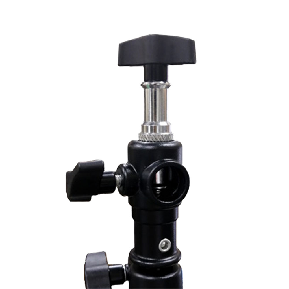 エクスパンダーパイプの両端はスピゴットアダプターと固定ツマミでライトスタンドに固定可能です。