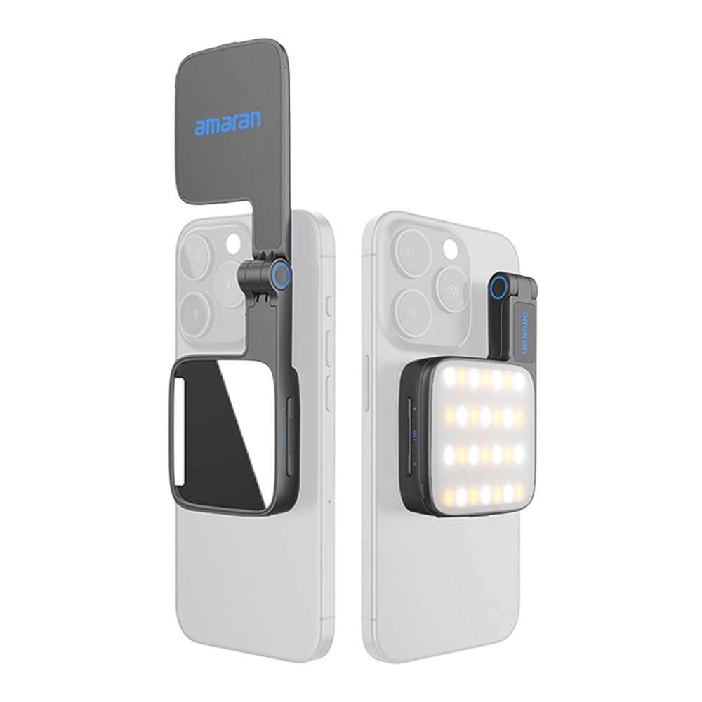 amaran Goは、マグネット付き(Apple社MagSafe対応)、スマートフォン向けの超小型LEDライトです。汎用性の高いフリップ型で業界初のミラー付のLEDライトが登場しました。より持ち運びがしやすく、従来のクリップオンライトの代わりとなるライト、セットアップもシンプルで使用しやすくなっています。