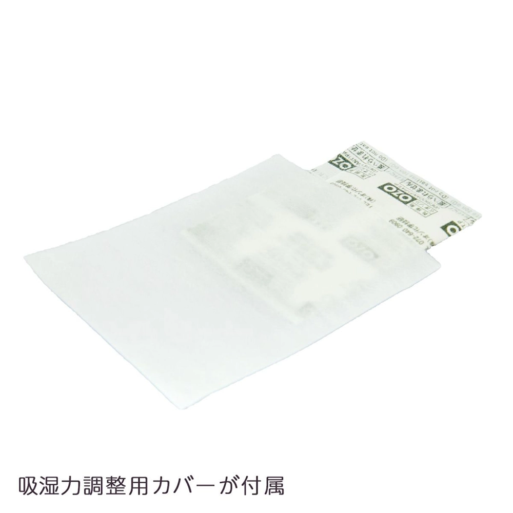 - 吸湿力調整用カバーが付属、湿度が下がり過ぎてしまう時に乾燥剤に被せて使用します。