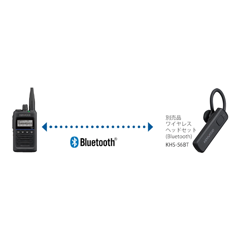TCP-D561BTはBluetoothを搭載したことで、PTT付きワイヤレスヘッドセットKHS-56BTに対応。KHS-56BTは、PTTモードとPTTホールドモードおよびVOX運用が可能で、PTTモードでは無線機本体のPTTと同じ操作感で使用できます。ケーブルを気にすることなく運用でき、通常約12時間※4の連続使用が可能ですので、一日の使用にも耐えられます。また、防塵防水性能IP55で水の飛沫がある現場などでも安心して使用できます。