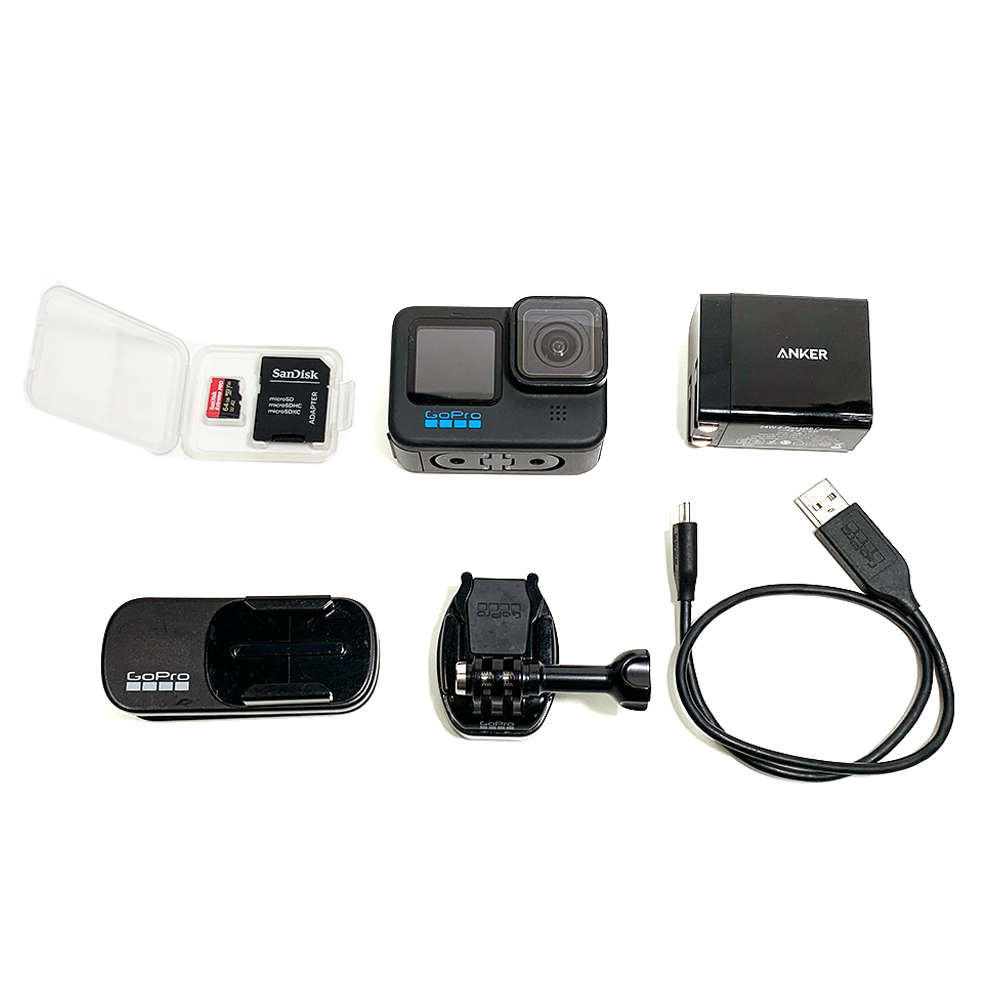 バッテリー、USBケーブル(TYPE A - TYPE C)USB-ACアダプター、メモリーカード(MicroSDXC64GB)クイックリリースバックル、トリポッドマウント、ケース