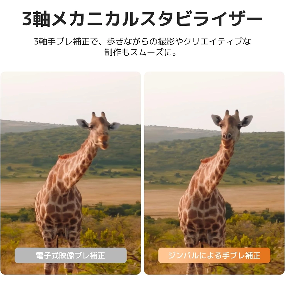 3軸手ブレ補正と複数のジンバルモードにより、歩きながらの撮影やクリエイティブな映像制作でも、子どもたちが遊ぶ様子や風景を安定して滑らかに捉えます。