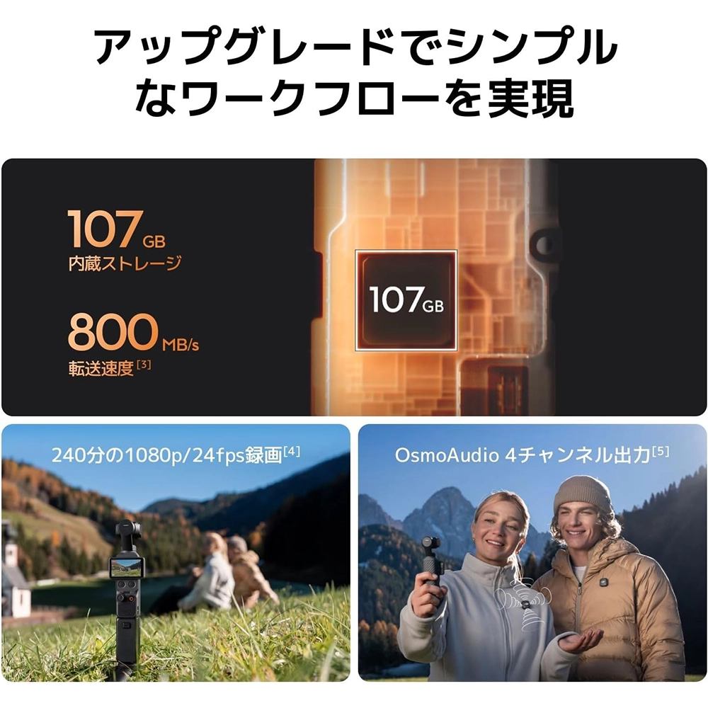 DJIMic 3トランスミッター、補助ライト、広角レンズ、Osmoミニ三脚などが含まれており、あらゆるシーンで直感的にクリエイティビティを発揮できます。