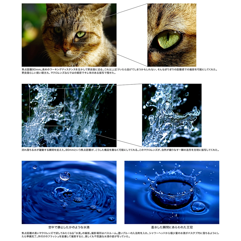 フォーカスリングを前後にスライドさせるだけで、AF/MFを素早く切り替えられる「リングスライドスイッチ」を搭載。さらに、コンティニュアスAF時でも、すぐにフォーカスロックできる「フォーカスホールドボタン」やフォーカシング時にレンズの全長が変化しない「インターナルフォーカシング」、マクロ撮影に不可欠な「倍率/距離目盛」を採用。マクロ撮影に最適な優れた操作性を備えています。