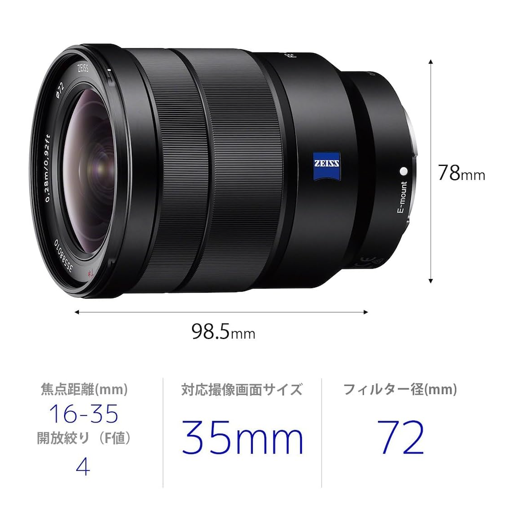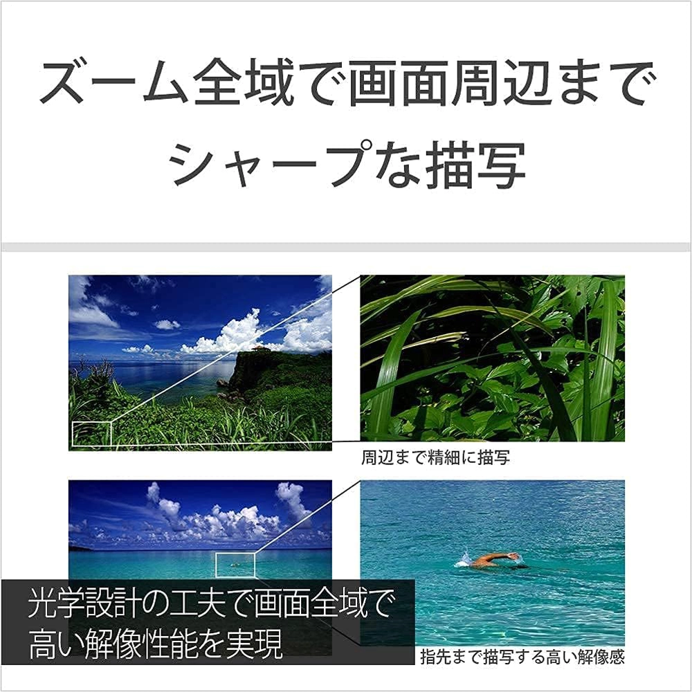 ソニー独自の高度な成型技術を用いた高度非球面AA(advanced aspherical)レンズを含む、非球面レンズ5枚とEDガラス3枚を贅沢に使用した高い光学性能は、周辺まで澄みわたる高い解像度と極限まで歪曲収差を抑えた忠実な色再現を実現。さらに、「T*(ティースター)コーティング」の採用により、反射を抑えた高コントラストな描写性能も発揮し、本格的な風景撮影を可能にします。