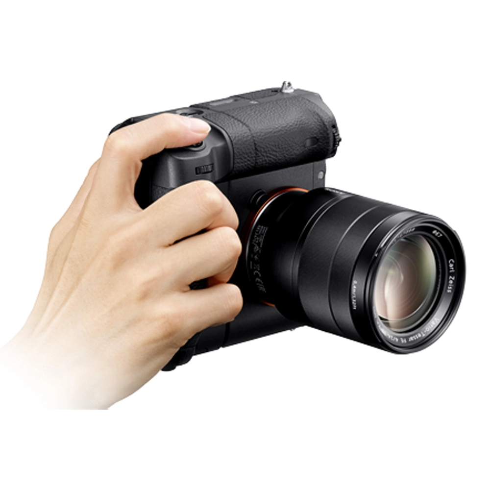縦位置撮影時はもちろん、大型レンズやマウントアダプター装着時、さらに横位置撮影時も快適に撮影できます。また、グリップ内にはバッテリーNP-FW50を2個まで装着でき、残量が少ないバッテリーを優先的に使用。残量がなくなると自動的にもう一方のバッテリーに切り替えて使用し、長時間の撮影や動画撮影をしっかりサポートします。