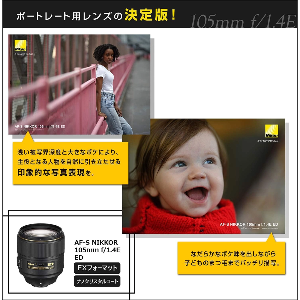 - 焦点距離105mmで開放F値1.4をAFと両立