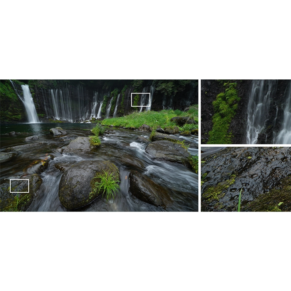 12mmという超広角でありながら、非球面レンズを含む新規光学設計により、画面中心から周辺まで高い解像性能を実現。また、ED(特殊低分散)ガラス、スーパーEDガラスを採用し、画面周辺まで色収差を効果的に抑制。さらにナノARコーティングでフレアやゴーストを抑え、優れた耐逆光性能を実現するなど、Gレンズならではの高い描写性能を楽しめます。