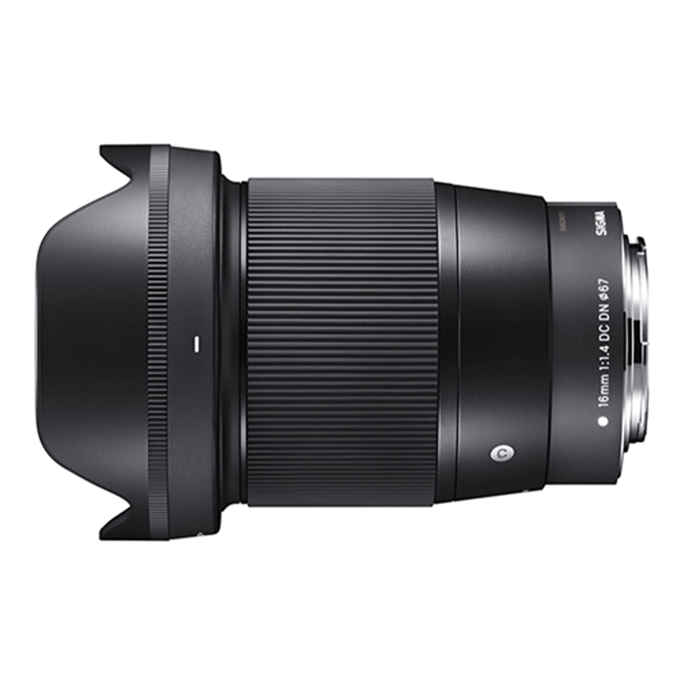 Sigma 16mm F1.4 DC DN | Contemporary は、ショートフランジバックを採⽤した⼩型軽量なカメラボディで使⽤する際のバランスを考えてコンパクト化を実現。動画撮影でも快適なAFを実現するためにフォーカス群の設計を考慮するなど、⾼画質を最優先にしながらも⼩型化と 快適な操作性を共に実現しました。歪曲収差はデジタル補正を採⽤する など、最先端のテクノロジーを投⼊しています。