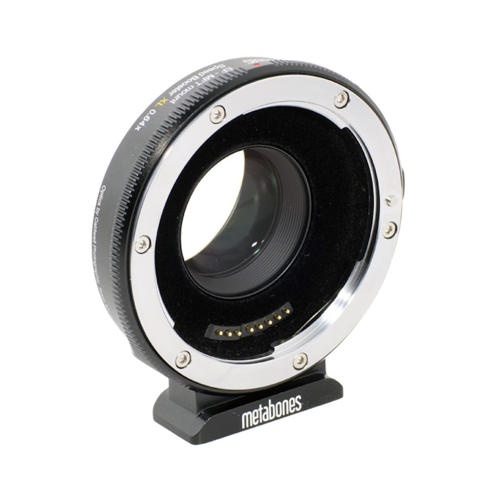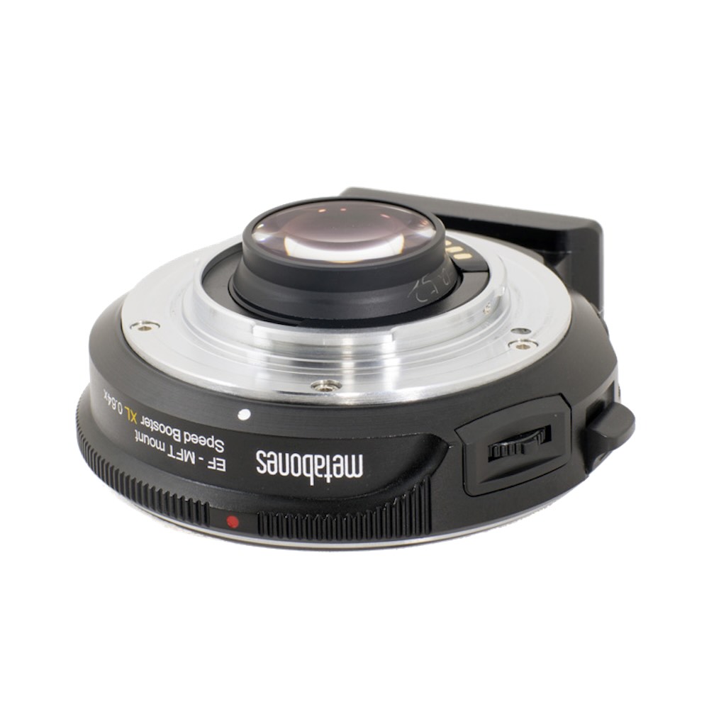 アダプター内にCaldwell社製のレンズを内蔵し、0.64倍ワイド化しF値を1段と1/3明るくできるSpeed Booster搭載モデルです。焦点距離を0.64倍にする事で35mm換算のレンズがマイクロフォーサーズでは通常2倍の画角になるところが1.28倍の画角で利用する事が出来るようになりました。 光も同時に集光させる事で開放値も1段と1/3明るくなりMTF値、シャープネス、コントラストも向上される仕様となっています。
