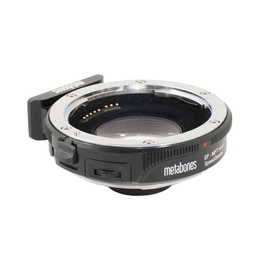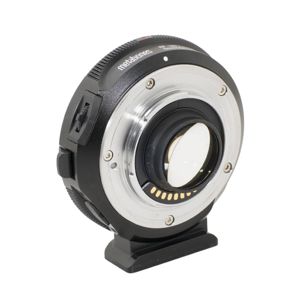 Canon EFマウントレンズをMicro Four Thirdsマウントボディに装着するためのアダプターです。SpeedBooster 0.64倍によりGH5 4K撮影時 APS-C相当の画角になります。電子接点を介してボディでキャノン製EFレンズの制御が可能となっています。