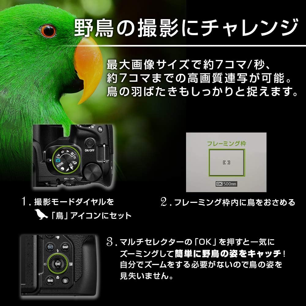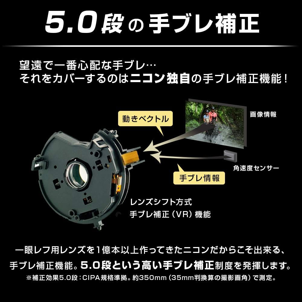 ダイナミックファインズームなら高画質のまま最大250倍、約6000mm相当での撮影も可能。デュアル検知光学VRによる補正効果5.0段の高性能レンズシフト方式手ブレ補正(VR)機能により、手ブレも高精度に抑えます。また、光学ズームと電子ズームを併用すれば最大500倍、約12000mm相当までズームが可能。