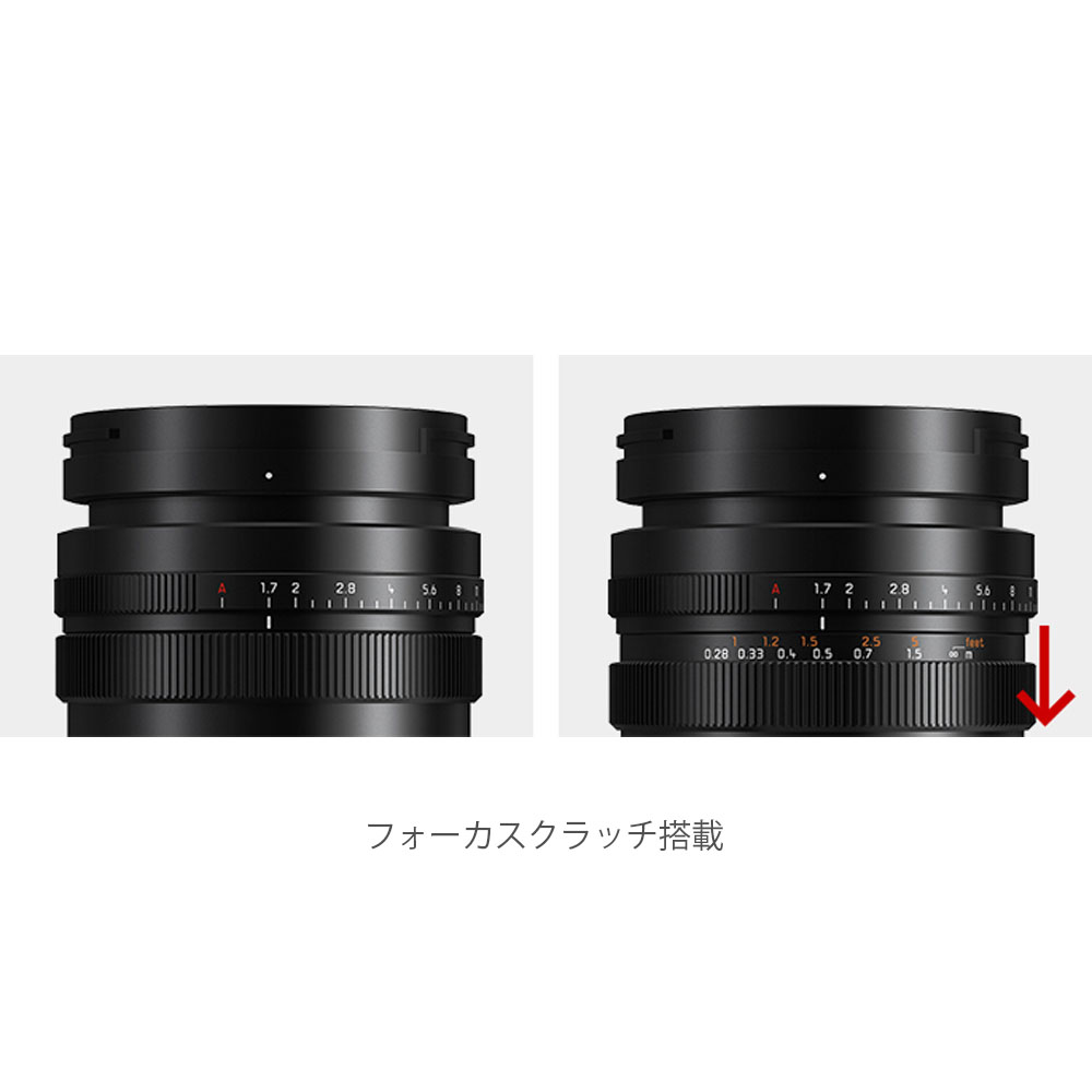 また、AF/MFの切り替えがフォーカスリングをスライドさせるだけで素早く行えるフォーカスクラッチ機構を搭載。フォーカスリングをスライドさせることで距離指標があらわれ、距離を見ながらのマニュアルフォーカスが可能となります。