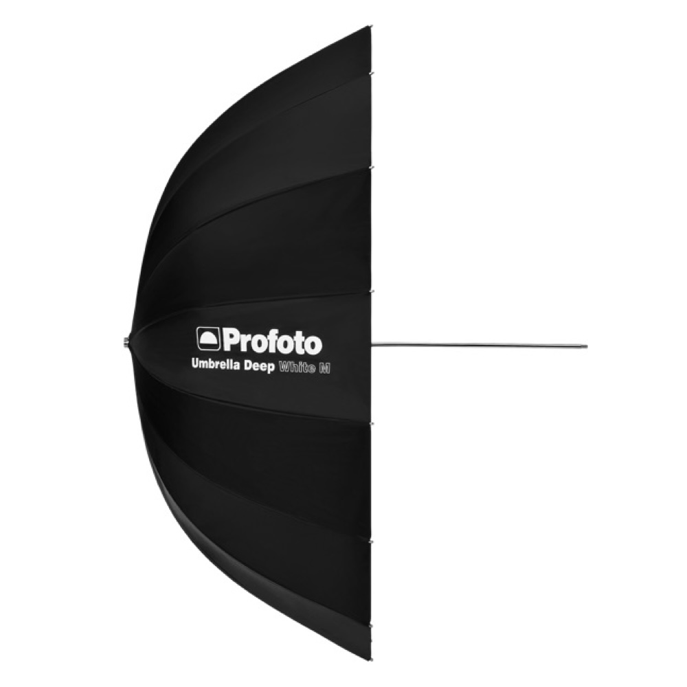 Profotoのアンブレラ ディープは、一般的なアンブレラと比較して奥行きが深いパラボリックな形状になっています。