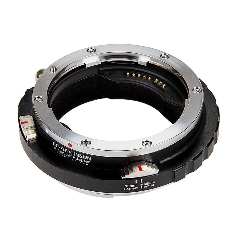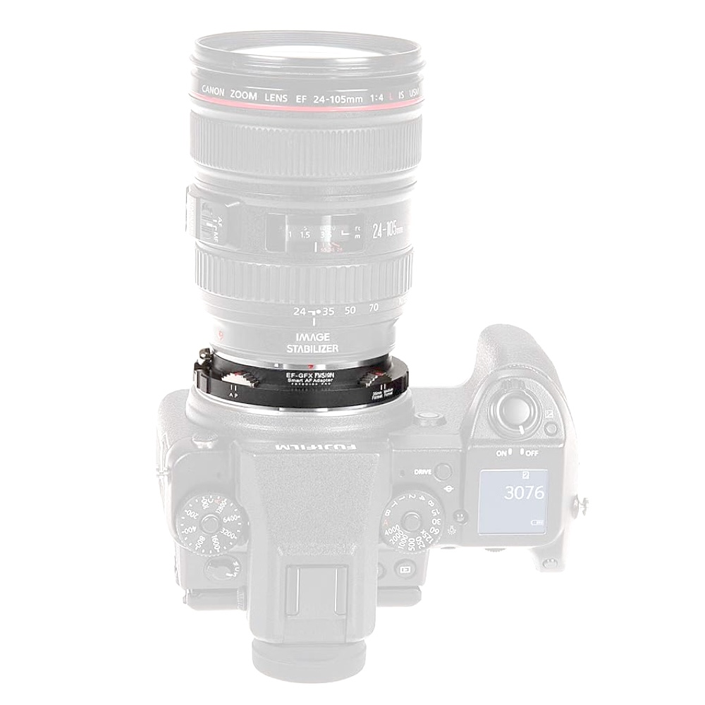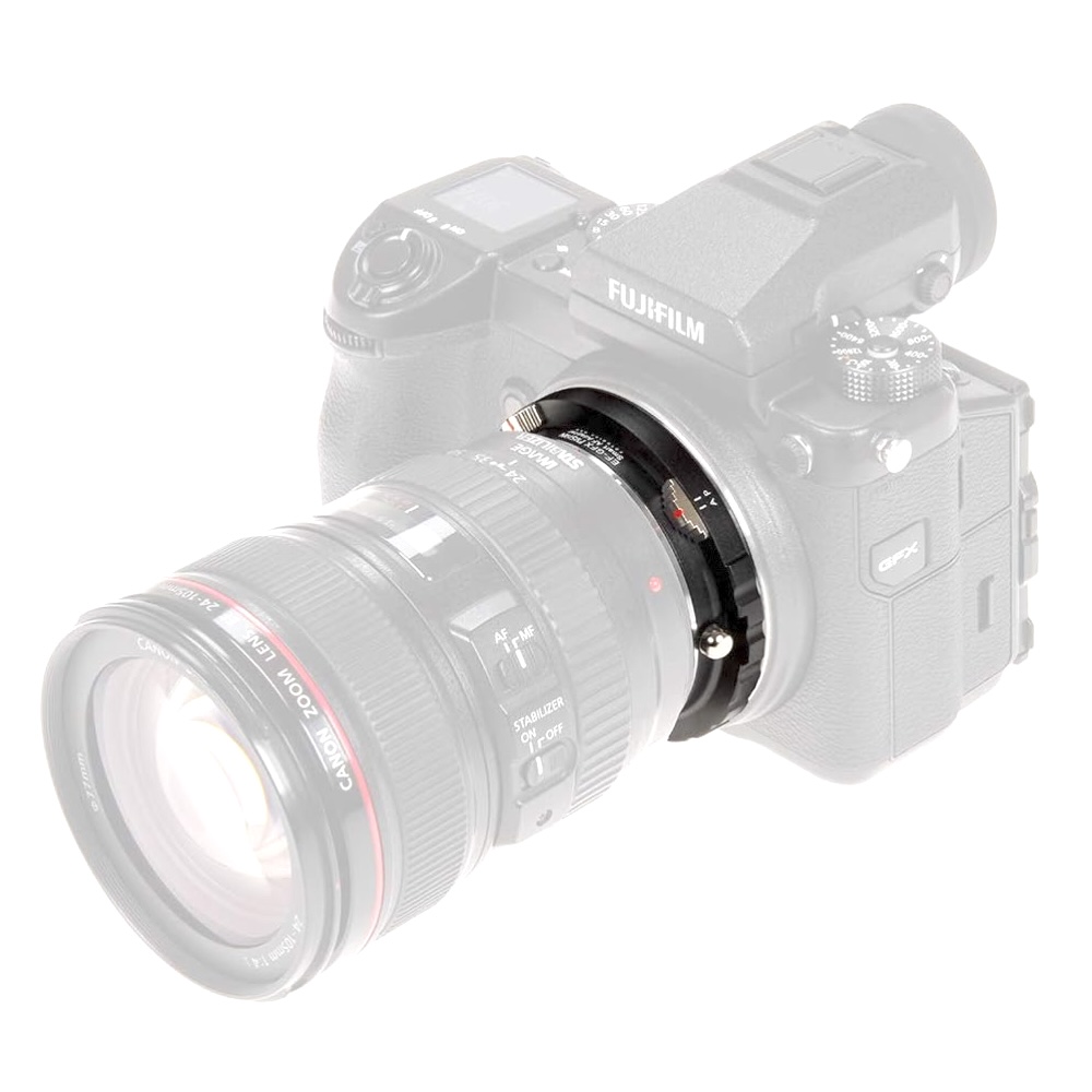 フジ中判GFXシリーズカメラに、キヤノンEFマウントレンズ(EF-Sレンズ非対応)を装着するためのアダプターです。