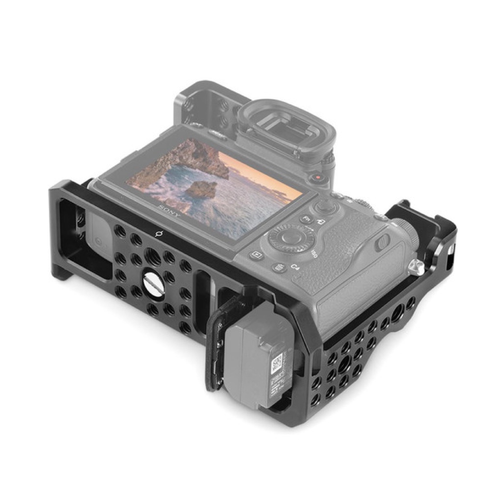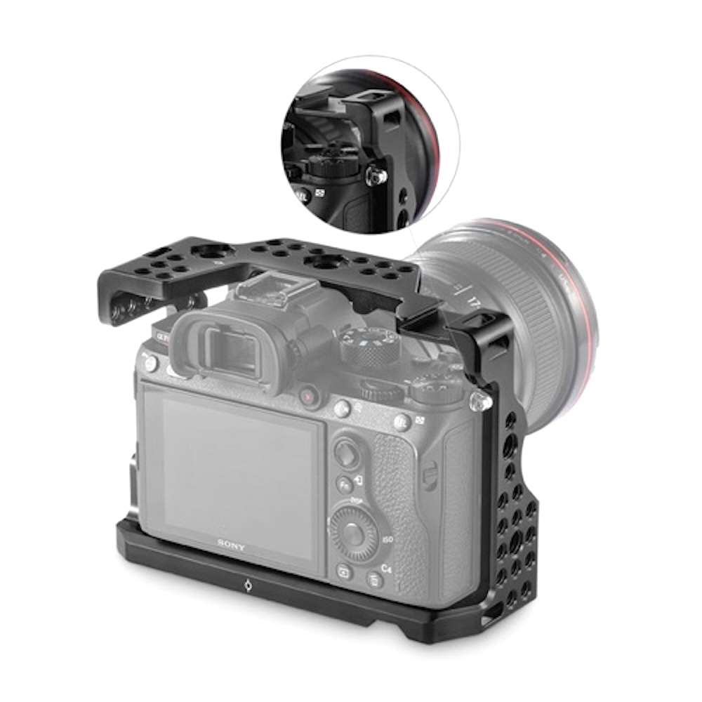 ケージには1/4ネジ穴や3/8ネジ穴、ARRIネジ穴、コールドシューなどを備えている為、外部マイクや外部モニター、SmallRig製アクセサリーの【トップハンドル 2165】やマジックアームアダプター2026などの撮影用アクセサリーを装着できます。カメラストラップやケーブルクランプ1679、マウントアダプターサポート1764などにも対応します。また、カメラのホットシューに【Sony XLR-K2M】やXLR-K1M或いはフラッシュライトを取り付けるスペースも用意されております。