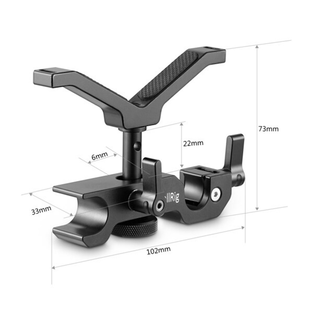 ノブを使えば高さ範囲を最大24mmまでに調整できるため、レンズ中心から15mm径ロッド中心までの距離を85mmという標準距離に確保できます。