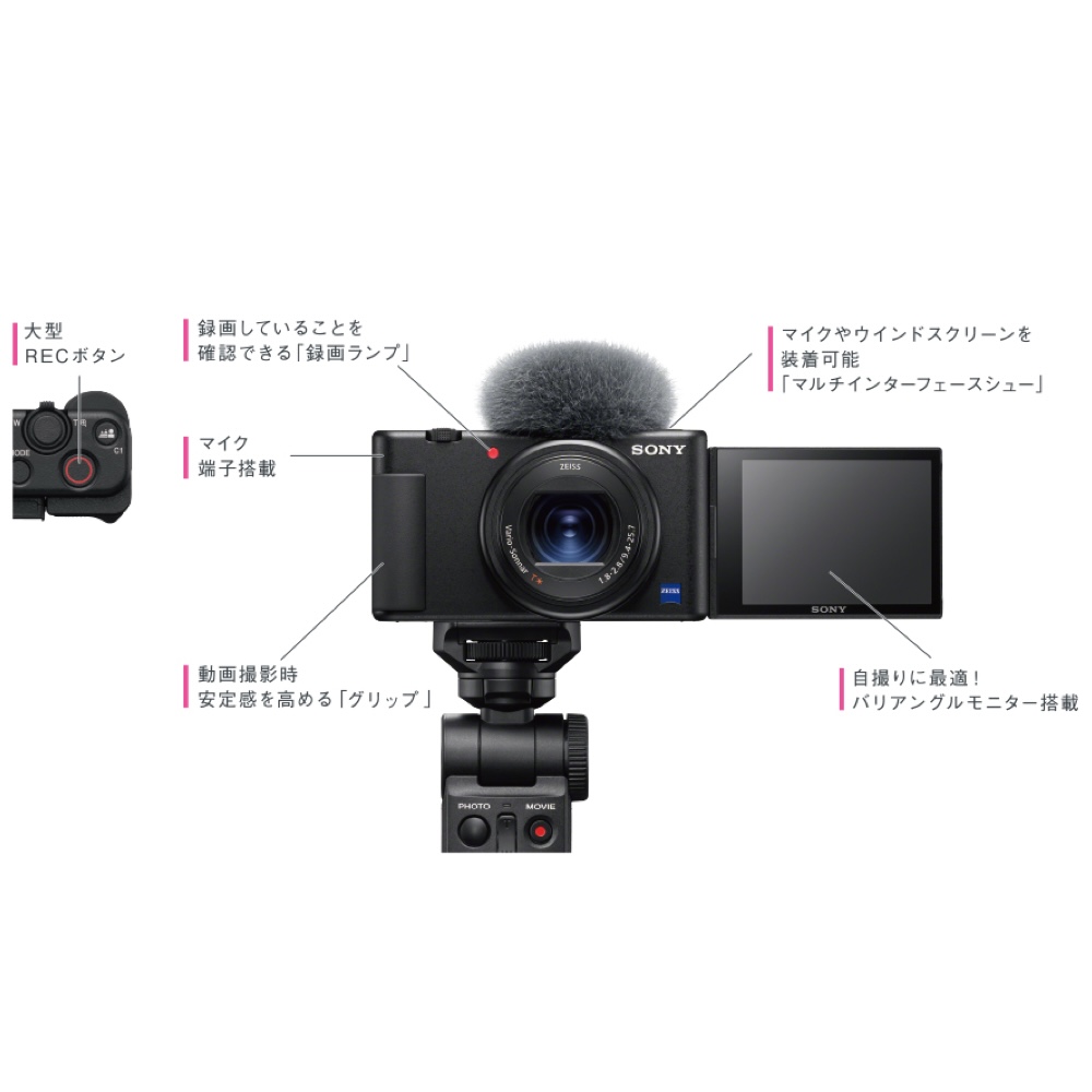 「VLOGCAM ZV-1」と三脚機能付きシューティンググリップ「GP-VPT2BT」のセットです。