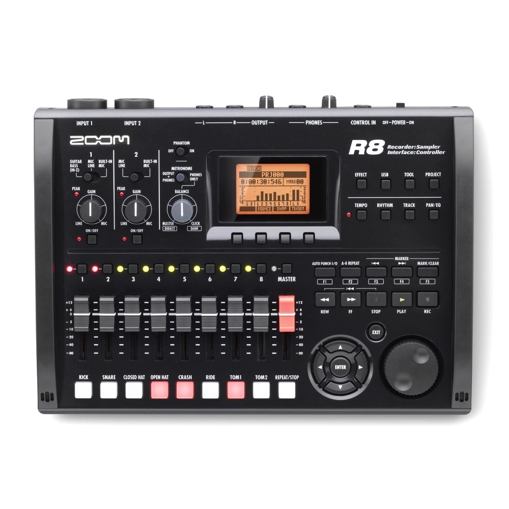DAW(デジタルオーディオワークステーション)ソフトユーザーなら、マウスよりもハードウェアでミックスしたいと思われるのは自然なことです。そんな時にも、R8は強力にサポートします。R8はMackie Controlのエミュレーションに対応し、CubaseやLogic、Ableton Live、Sonarなど主要なDAWソフトのコントロールサーフェスとして機能します。フェーダー操作やトランスポート、オートロケート、ステータスボタンによるコントロールが行え、完璧なミックス作業をリアルタイムに行えます。また、機能をアサインできるファンクションキーを5個使用でき、マーカーポイントの設定や編集機能の操作に利用できます。