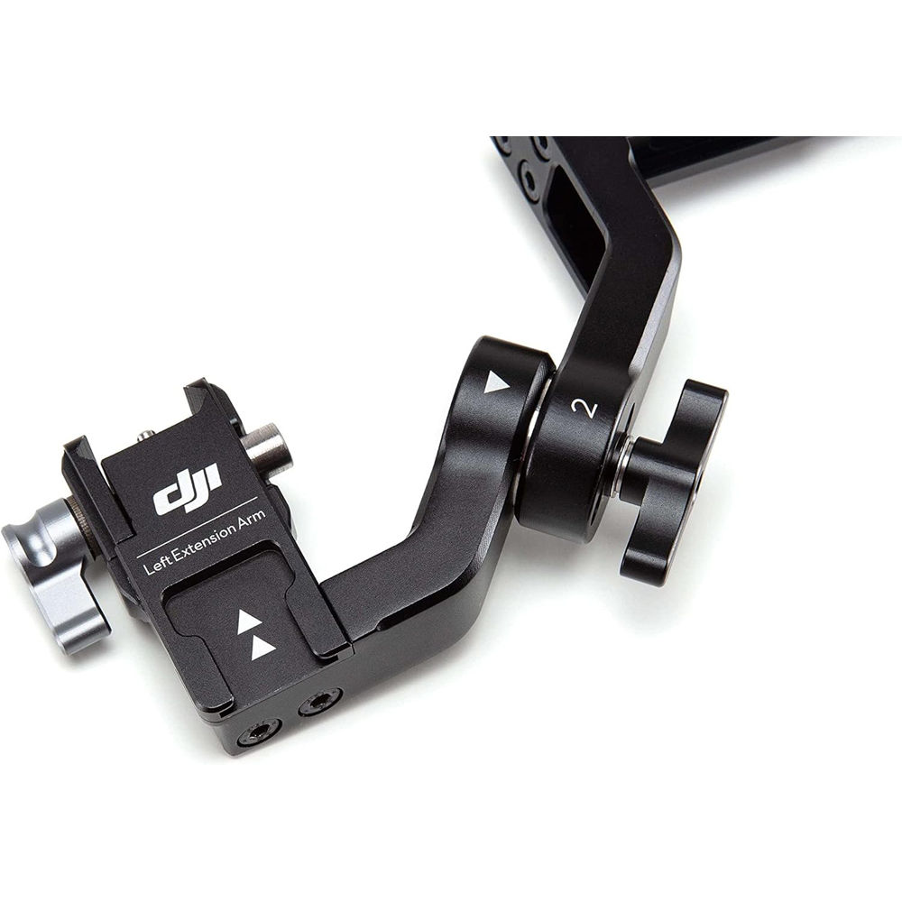 クイックリリース設計が施され、また、メカニカルハンドルが両側についています。ハンドルの代わりにDJI Ronin テザー制御ハンドルを使用することもできます。水平アームの両方に、3/8-16と1/4-20のねじ穴とコールドシューポートがあり、様々なアクセサリーを取り付けることが可能です。