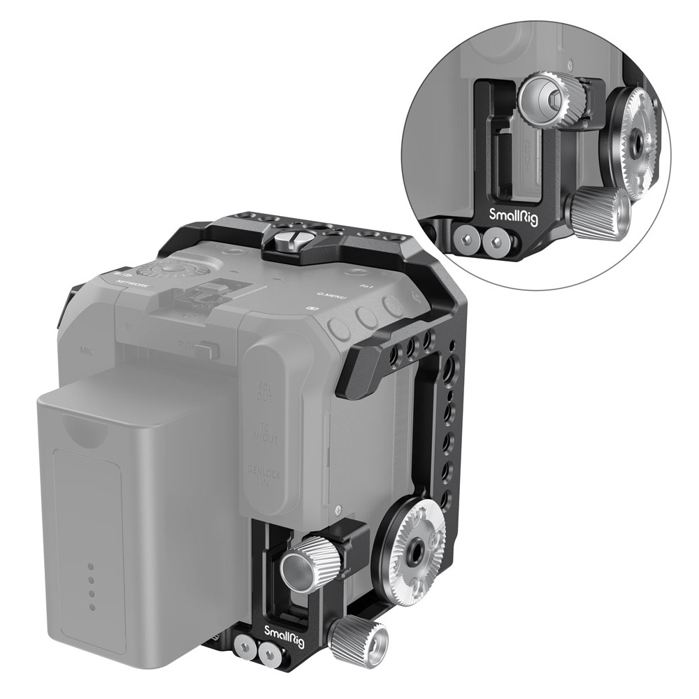 ケージには1/4インチネジ穴(三脚穴)や3/8インチネジ穴(カメラ大ネジ)、ARRIアクセサリーマウント、NATOレール構造、ARRIロゼットなどのマウントを備え、サイドハンドル2093や【トップハンドル2165】、コールドシューアダプター2260、モニターマウント 2903などの様々な撮影用アクセサリーを装着でき、高品質な動画撮影が簡単になります。ケージ底面部に付属したドライバー工具の携帯や保管が簡単で、ケージを着脱する際に非常に便利です。
