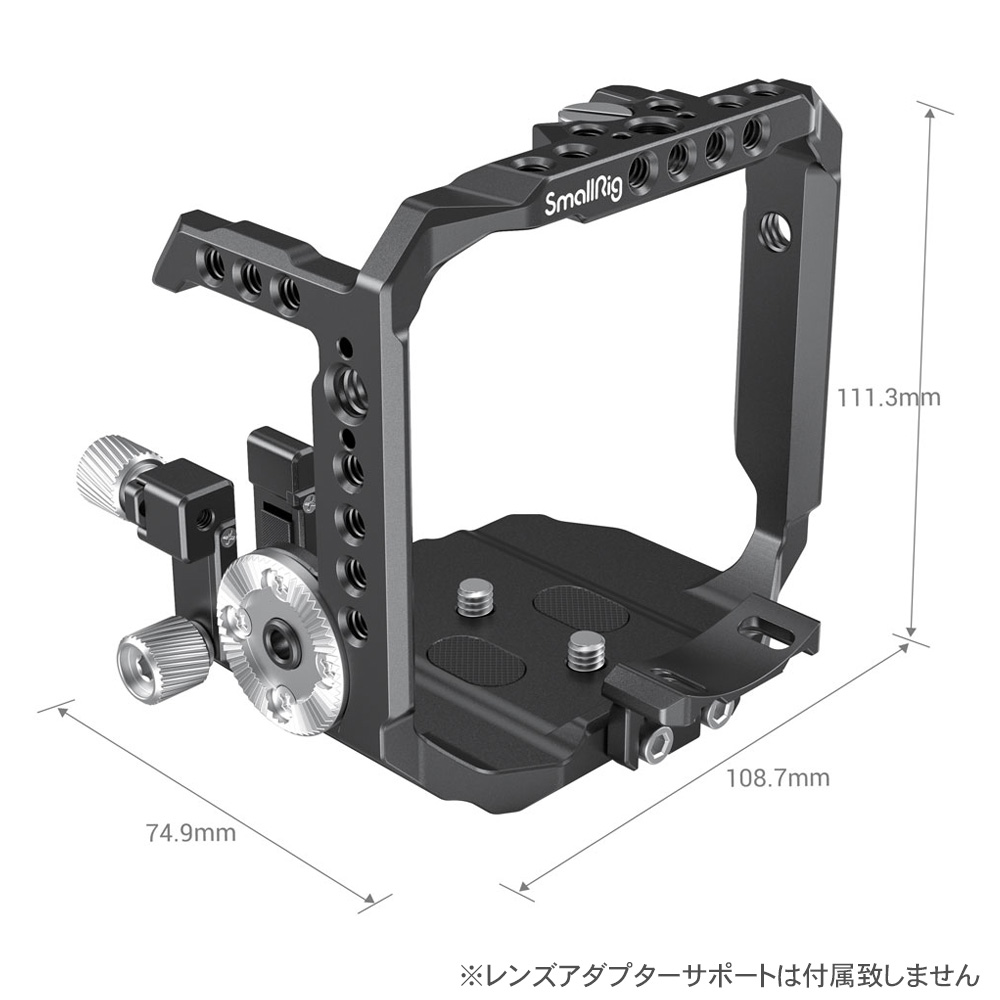 カメラを守り動画撮影の可能性を広げる為に設計されています。ケージは3本の1/4インチネジ(上部に1本、底面部に2本)でカメラを固定し、安定性が高く長時間使用してもガタつきが発生しにくくなっっています。また、ケージはカメラから型を取って作ったため、ケージはカメラのボタンや端子、ホットシューなどを干渉することはありません。
