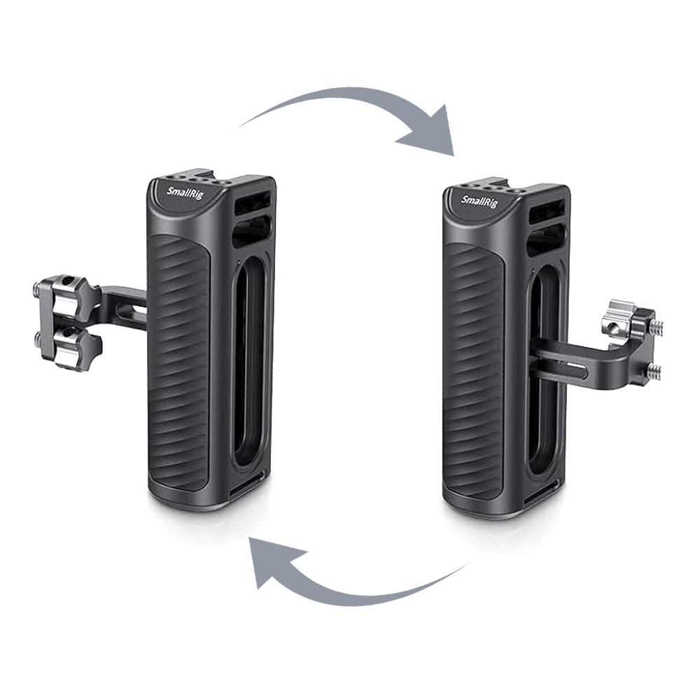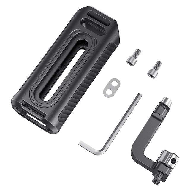 カメラケージの左側にも右側にも対応できる汎用サイドハンドルです。