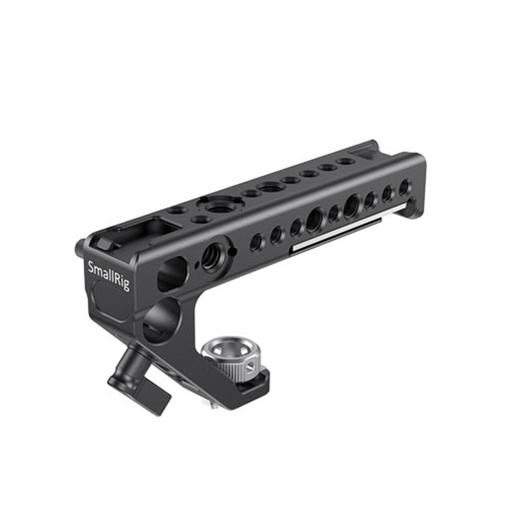 ハンドルには1/4ネジ穴や3/8ネジ穴、ARRIアクセサリーマウント、コールドシュー、15mm径ロッドクランプなどを備えている為、モニター用アームやマイクなどの様々なビデオ撮影用アクセサリーを装着できます。