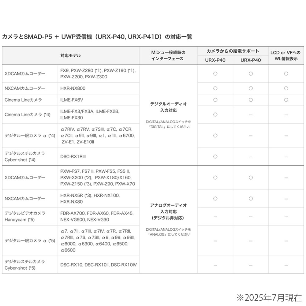 ワイヤレスマイクロホンパッケージUWP-Dシリーズの受信機(ポータブルダイバーシティーチューナー:URX-P40)とカメラを接続するための専用シューマウントアダプターです。ソニー製のビデオカメラレコーダーやレンズ交換式デジタルカメラなどのマルチインターフェースシューを登載したカメラに対応しており、動画撮影におけるワイヤレスマイクの利便性を向上させます。