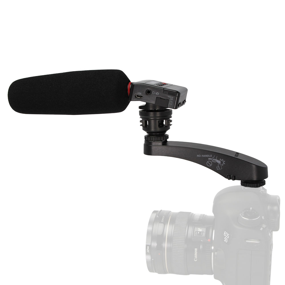 本体にシューアダプターを装備しており、カメラに直接装着することが可能です。装着した状態でもファインダーを覗く動作の邪魔にならず、手持ちで撮影する際でもカメラ本来の機動性を損なうことなく収録ができます。