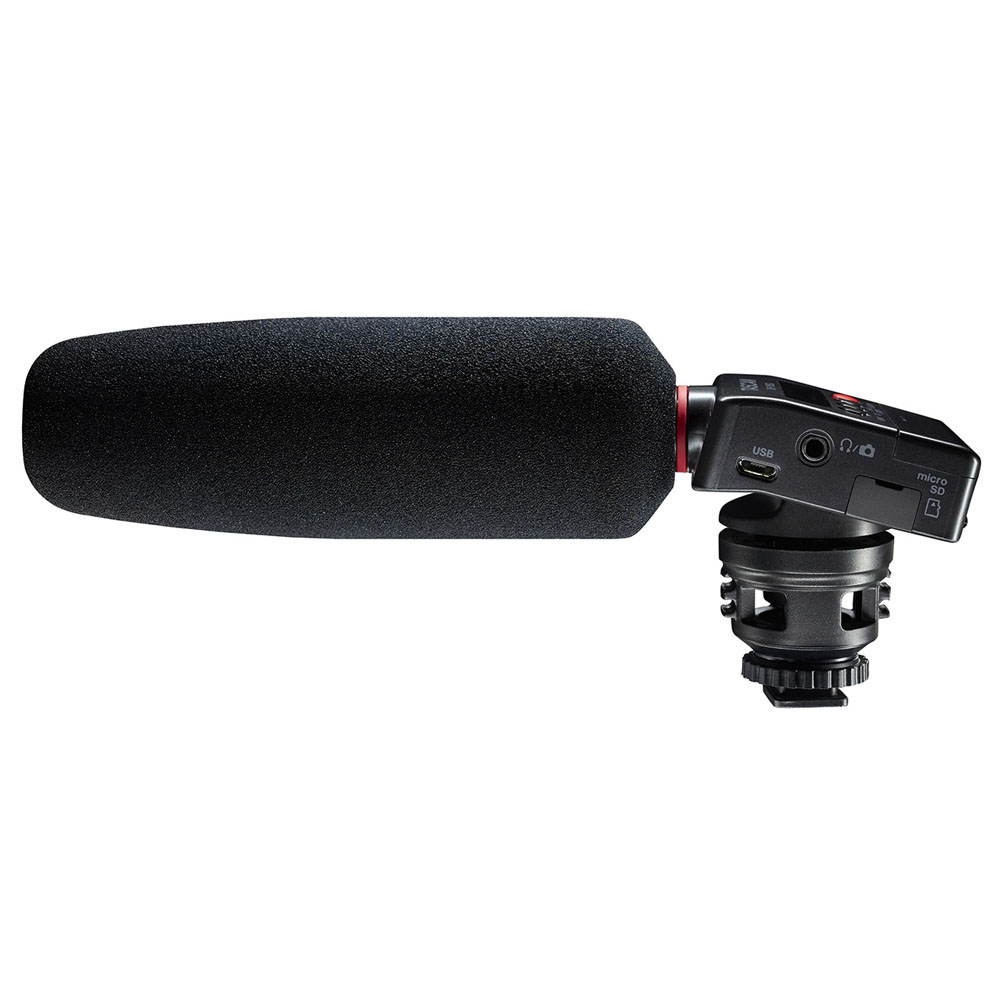 TASCAM自社設計のショットガンマイクを搭載しています。スーパーカーディオイドと呼ばれる鋭い指向性を持つこのマイクは、マイクが向いている方向の音を狭い範囲で集音することができ、周囲の音に紛れることなく狙った音を録音することが可能です。