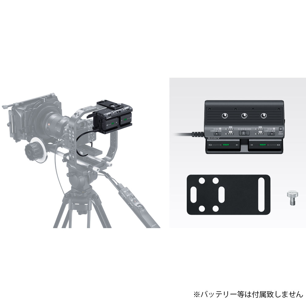 接続プレートを使用して、ZシリーズバッテリーNP-FZ100やWシリーズバッテリーNP-FW50に対応したカメラに電源供給して長時間撮影できます。USB端子を2個装備し、接続プレートでつながったカメラとUSB機器への同時供給も可能。