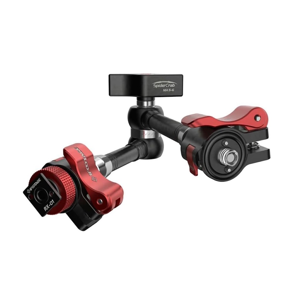 中央にある一つのノブで自由な角度に調整ができ、撮影に使用するモニターやライト、マイク等のアクセサリの取り付けに役立ちます。両端にバックルロックが付いた2つのクイックリリースヘッドが装備されており、アクセサリをすばやく取り付けることができます。クイックリリースアダプタは、落下を防止する2重ロックシステムと回転防止機構を備えた、機能的システムです。